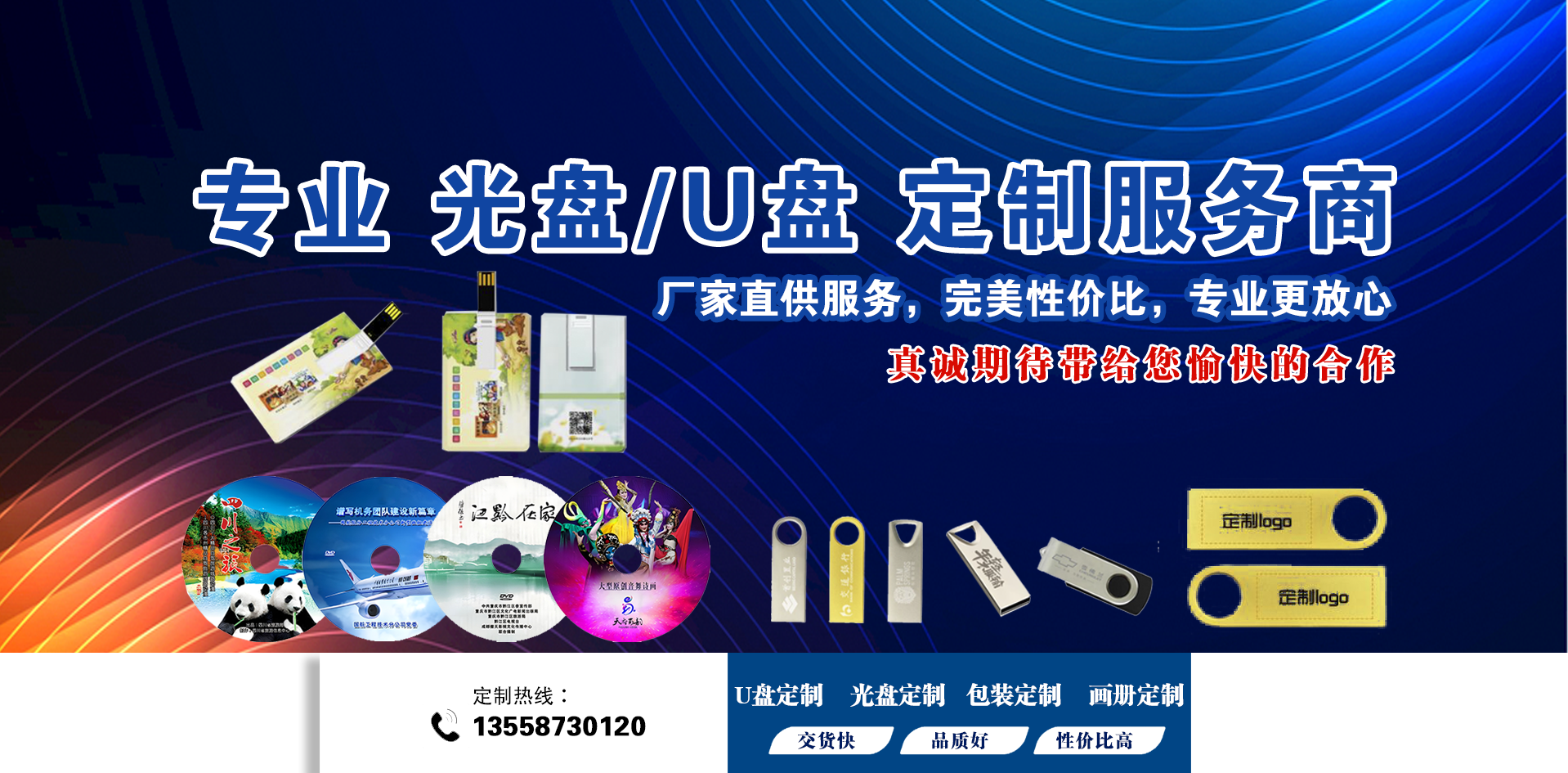 武侯区鑫诚数码产品经营部成立于2013年,是一家高品质光盘、U盘个性化定制解决方案提供商、空白光盘批发商、光盘厂西南区办事处。专业从事西南地区光盘、U盘的定制(压制、刻录、拷贝、印刷、加密),提供...